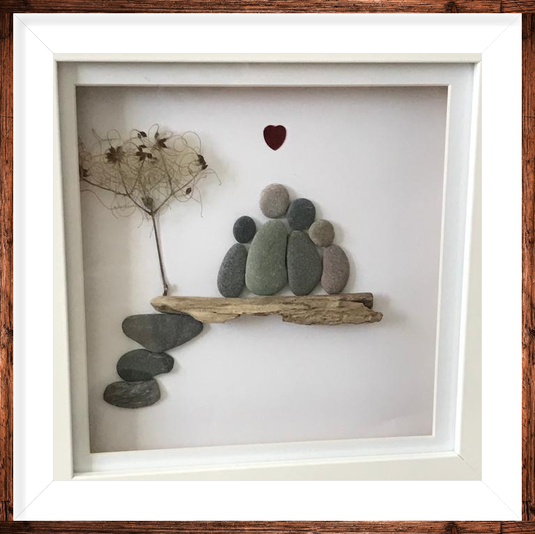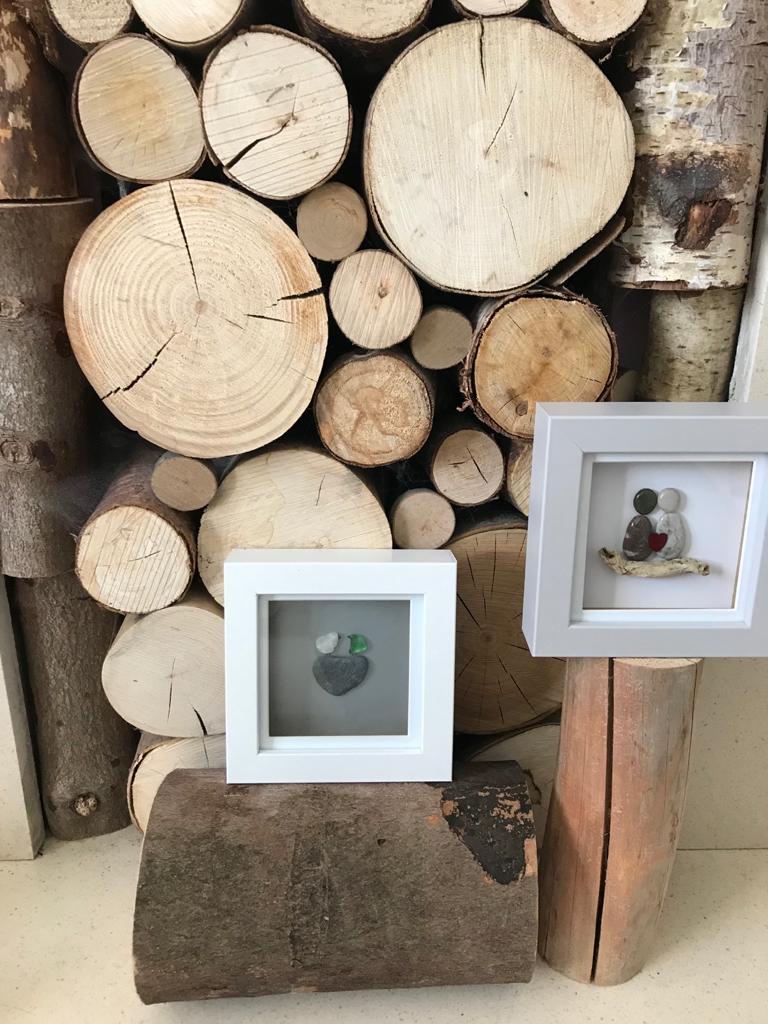 When you visit us, please look at all the art work in our cottages. Handmade by the owner and available for sale. Time spent collecting pebbles, thinking of ideas and framing or using logs to display the beautiful images. Please check the price tags on each individual item. All bespoke and orders can be taken....